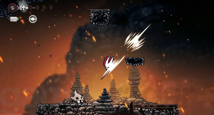 Хорнет начнет пикирующий спуск вниз, поражая любые объекты или врагов на своем пути. Важно учитывать, что горизонтальная позиция вашего героя повлияет на направление падения. Если нацелитесь неправильно, вы рискуете промахнуться мимо цели, и прием не принесет пользы.
