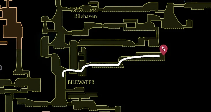 6. После открытия иглончели и цепкого захвата отправляйтесь в локацию на юге от Костяной Низины спуститесь вниз и активируйте рычаги в локации, отмеченной 1. После этого спуститесь вниз и пройдите по указанному пути.