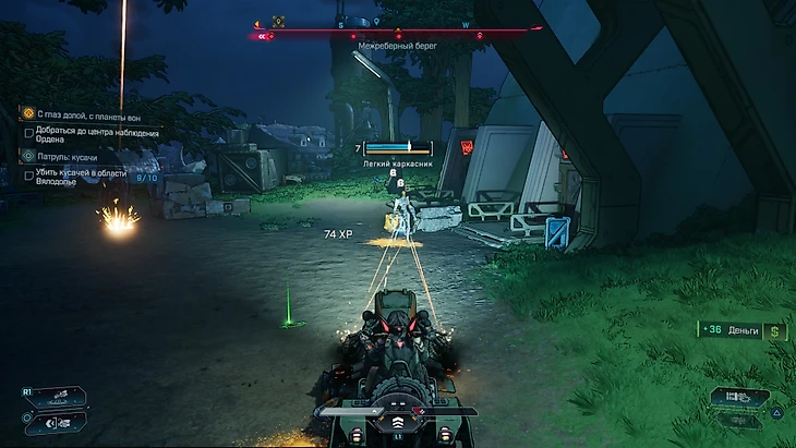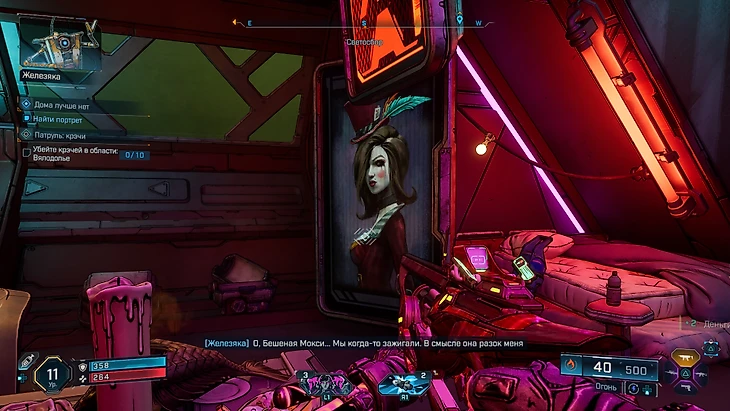 Я закрыл десятки побочек, но хоть как-то зацепила лишь одна. В ней Железяка строит из себя крутого лидера сопротивления, но на деле страдает от одиночества и ностальгии по Пандоре. В итоге отправляет за вещами, которые привез с легендарной планеты и глупо потерял. Там картина Мокси, старая металлическая подруга и узнаваемая маска рейдера. По ходу прохождения Железяка вспоминает, как Мокси над ним подшучивала, как Хранители выкашивали бандитов. Затем после терапевтической беседы складывает памятные вещи на лодке и взрывает их – так расстается с прошлым и фокусируется на настоящем.