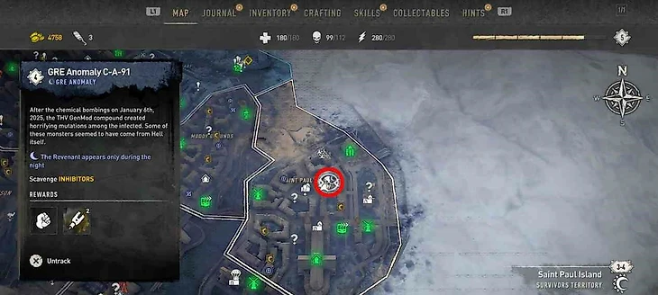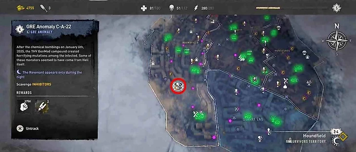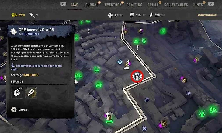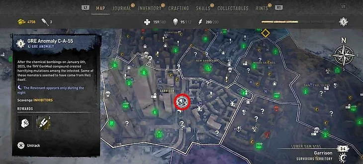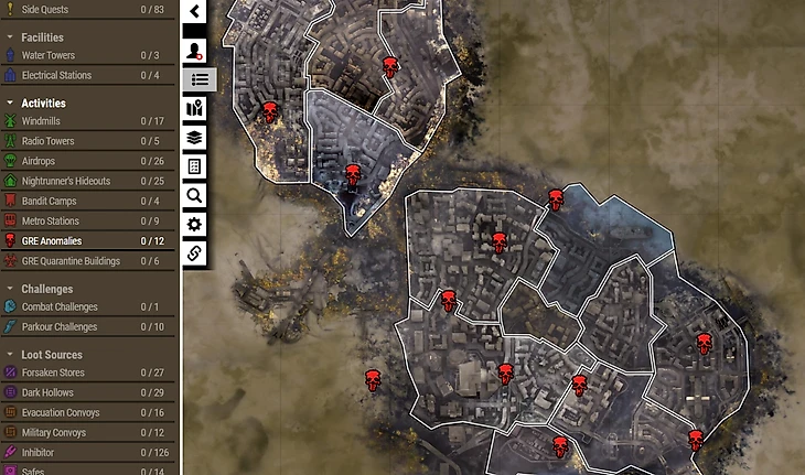 Чтобы упростить поиск, рекомендуем воспользоваться интерактивной картой Dying Light 2. Там можно убрать все лишние отметки и включить фильтр «GRE Anomaly» – на карте появятся все расположения ВГМ-аномалий с указанием наград. Это значительно экономит время и позволяет планировать ночные рейды с максимальной эффективностью.