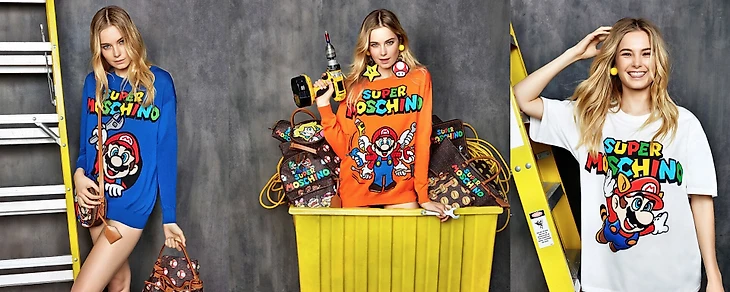 57. Марио от кутюр. В 2015 году в честь 30-летия Mario итальянский люксовый бренд Moschino выпустил коллекцию «Super Moschino». Она включала футболки, свитеры и аксессуары с персонажами Mario, Luigi, Peach, Toad и Bowser.