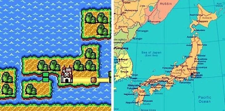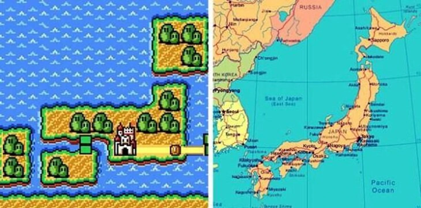 40. Super Mario Bros. 3 в Японии? Действие игры разворачивается на островах, очертания которых напоминают Японию. Замок расположен на месте Киото, родного города Nintendo.