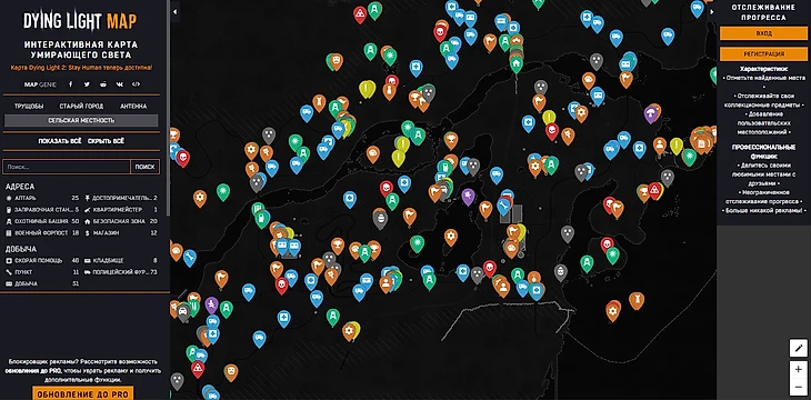 Интерактивная карта для Dying Light – незаменимый помощник для каждого игрока, который стремится исследовать мир игры максимально полно и эффективно. Свыше тысячи отмеченных точек, включая коллекционные предметы, тайники, побочные задания и безопасные зоны, позволяют легко ориентироваться в огромном игровом пространстве. Удобные фильтры и быстрый поиск помогают мгновенно находить нужные объекты, а встроенный трекер прогресса и возможность добавлять собственные заметки делают исследование мира не только удобным, но и увлекательным процессом, превращая карту в настоящий путеводитель по Харрану.