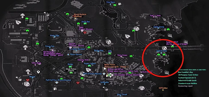 Заросли лаванды располагаются в непосредственной близости от трущоб. Если двигаться в восточном направлении, можно обнаружить группу каменистых островков – именно там и произрастает целебное растение. Отличным ориентиром служит старая баржа, миновав которую, в светлое время суток без труда можно увидеть необходимое растение.