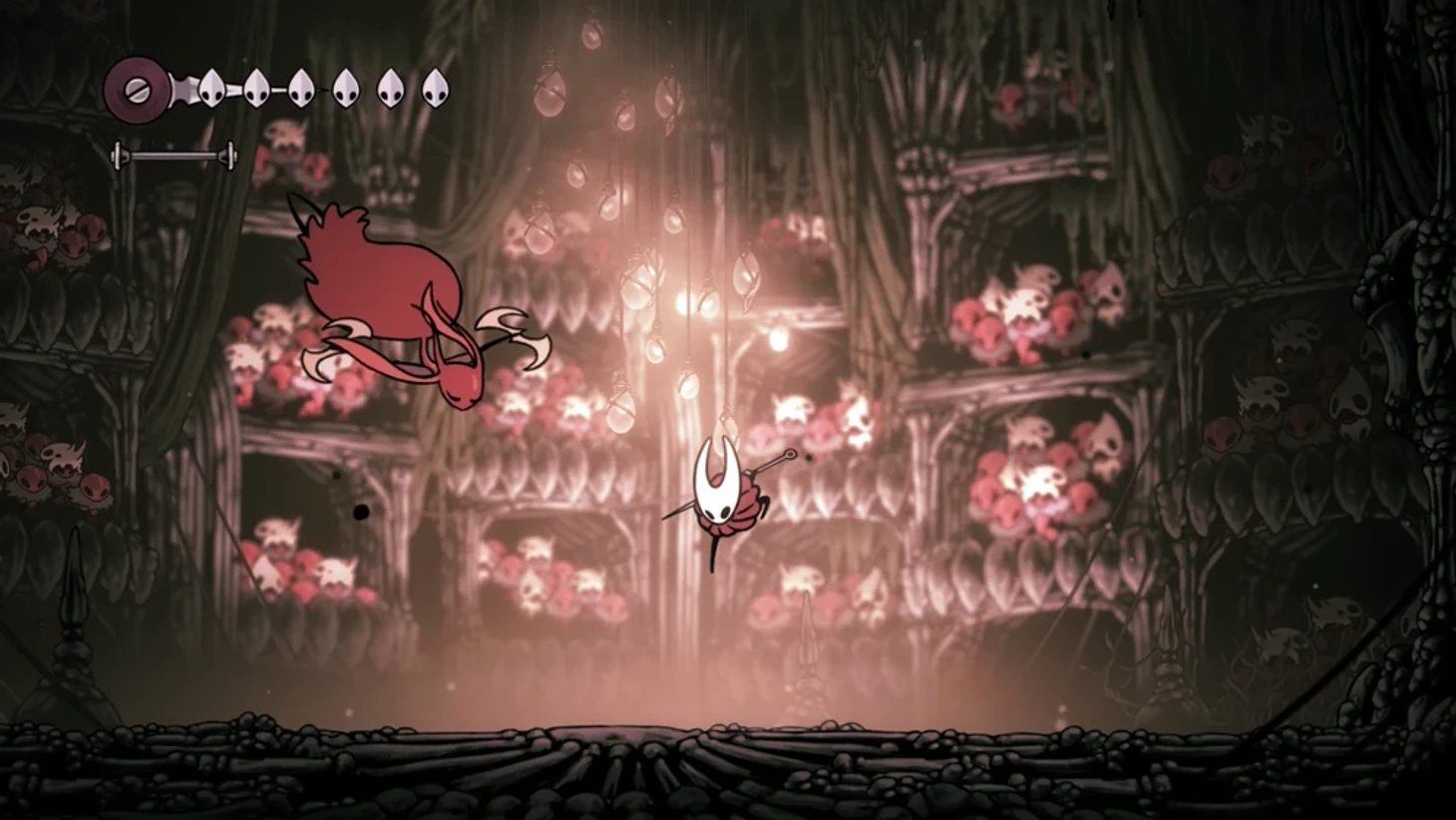 Четвертый хор – это металлический автоматон, охраняющий глубины доков. Он атакует своими массивными руками: вертикальные удары ломают платформы, а горизонтальные создают опасные зоны. Арена постепенно усложняется, ведь падение в лаву отнимает сразу две маски здоровья. После нескольких фаз появляются огненные шары и воздушные потоки, позволяющие использовать окружение для победы. Бить нужно исключительно по голове, остальная часть тела защищена броней. Интересно, что босса можно одолеть как обычными ударами, так и косвенным способом – разрушив потолочные блоки, которые обрушиваются прямо ему на голову. Четвертый хор делает список боссов Silksong особенно зрелищным.