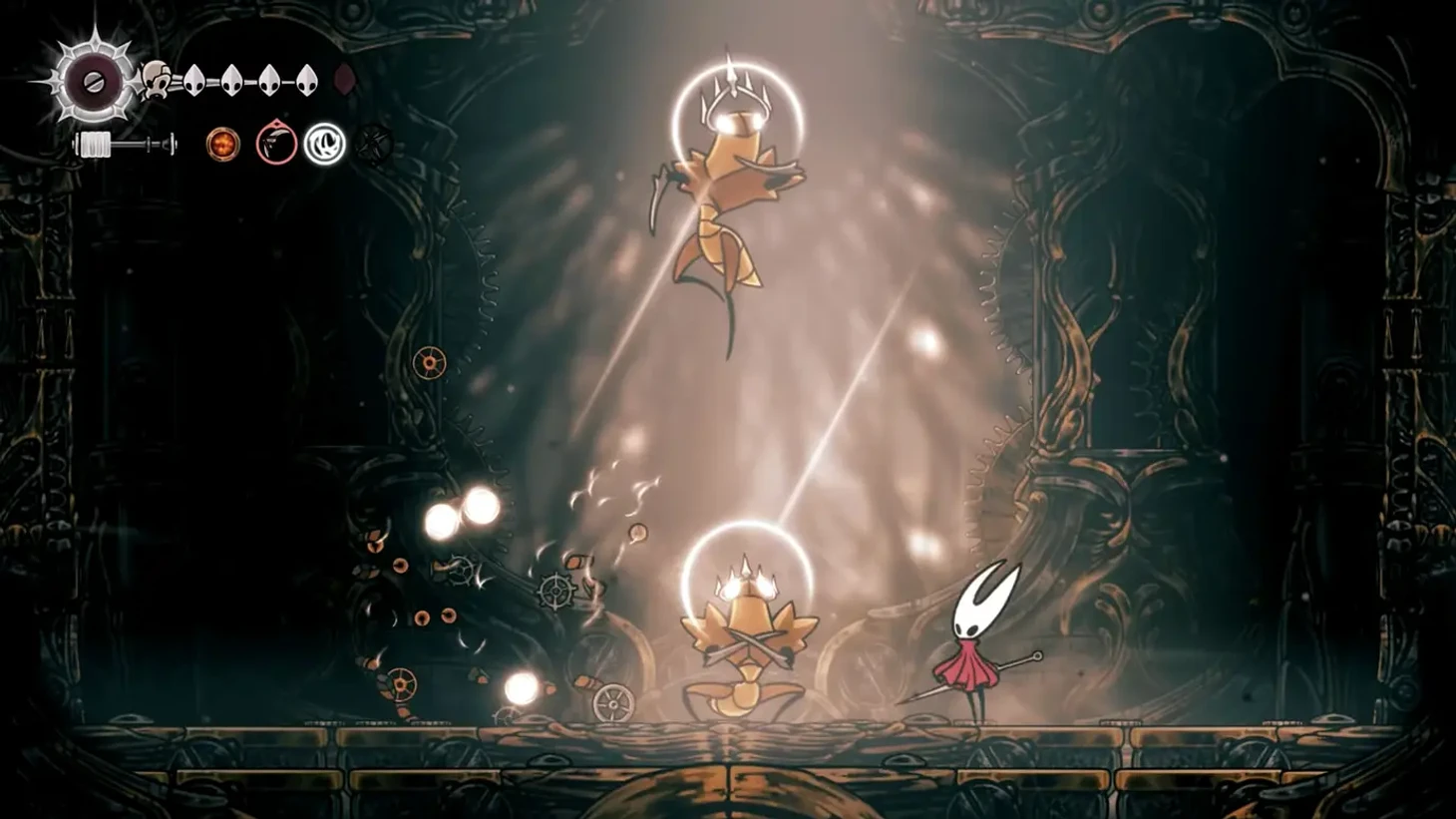 Заводные танцоры – уникальный дуэт в залах Цитадели. Они движутся синхронно, создавая сложные комбинации ударов, а белые линии на арене заранее указывают траекторию атак. В разных фазах их ритм меняется: сначала они быстры, затем начинают действовать поочередно, что немного облегчает задачу. После гибели одного из них второй становится вялым и постепенно теряет силы. Этот бой сочетает красоту и опасность, делая Танцоров запоминающимся испытанием. В списке боссов Hollow Knight Silksong они символизируют изящество и смертельную синхронность.