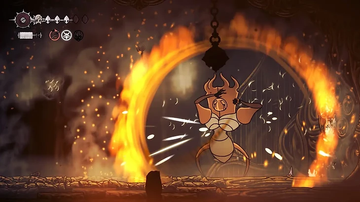 Последняя судья ждет игрока на Взрывных ступенях после выполнения квеста с колоколами. Ее арена делится на три полноценные фазы боя. Сначала она использует обычные приемы с колоколом: удары, броски и прыжки. На второй стадии колокол воспламеняется, и удары сопровождаются огненными эффектами, превращающими арену в настоящий ад. В третьей фазе атаки становятся быстрее и смертоноснее. При смерти Судья выпускает взрыв искр, способный убить игрока. Этот босс демонстрирует, сколько боссов в Hollow Knight Silksong подталкивают к пределу возможностей.