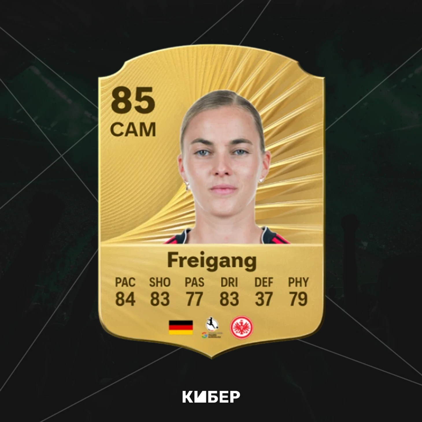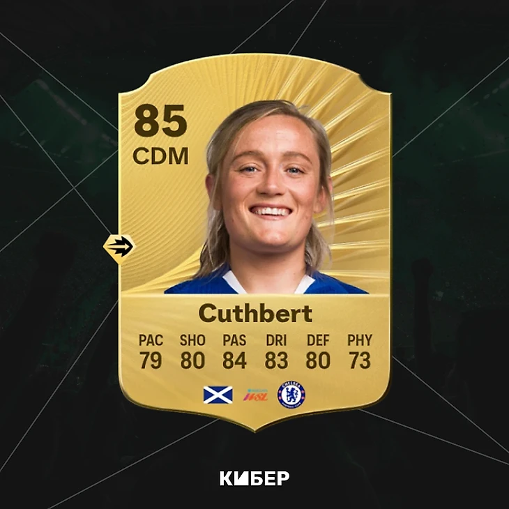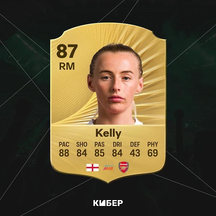 Хлое Келли известна в женском футболе мемными празднованиями и потрясающим дриблингом. Этим летом она выиграла второй Евро в карьере и получила крупное улучшение ударов – до 85. У Келли очень приятная сбалансированная карточка, которая умеет все на высоком уровне.