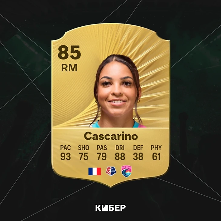 Фанатам скорости подойдет Дельфин Каскарино. Француженка спринтует на 93 балла, а великолепный дриблинг (88) и 5 звезд финтов сделали ее копией читерного Усмана Дембеле из прошлых частей симулятора. Каскарино не так хороша в завершении и предпочитает роль в поддержке.