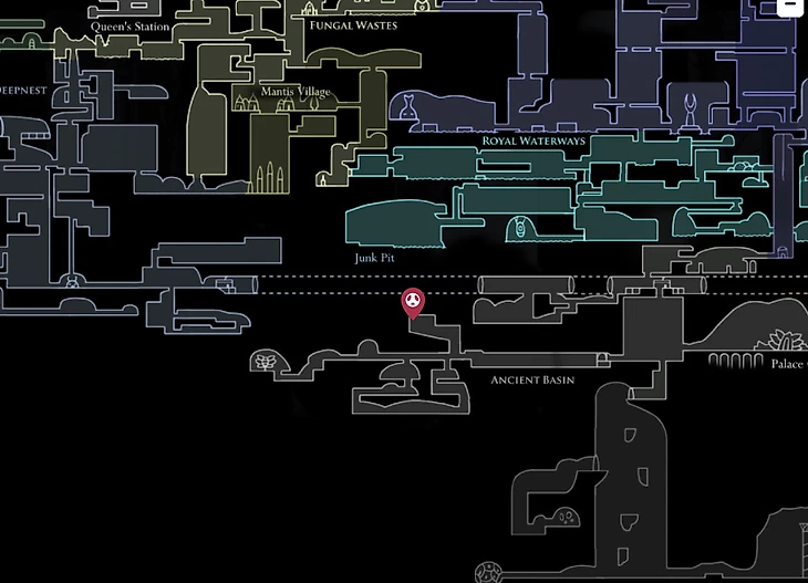 Для получения карты сначала войдите в левую секцию области и спуститесь вниз по платформе. Обратите внимание на характерные звуки близлежащего картографа Корнифера и заметную бумагу неподалеку. Войдите внутрь тоннеля и следуйте налево, чтобы встретиться с Корнифером. Оплатите сумму в размере 112 единиц, чтобы приобрести карту региона Края Королевства.