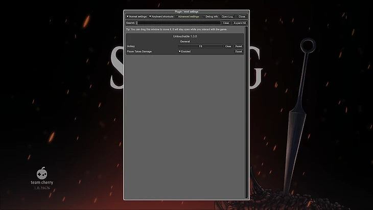 Мод Untouchable дает полный контроль над уроном, который получает Хорнет. Вы можете включить или выключить урон для игрока в любой момент, включив режим бессмертия. Это идеальный мод на бесконечные хп для тех, кто хочет беззаботно исследовать мир, оттачивать навыки в сложных боях или просто наслаждаться красотой игры без лишнего стресса.