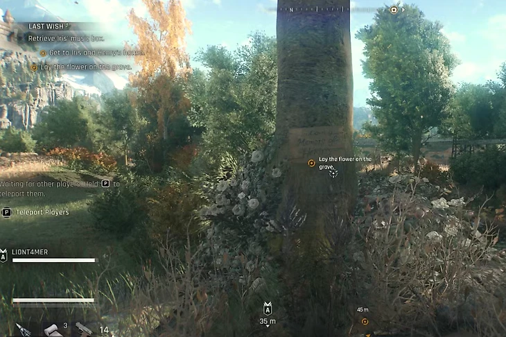Поиск могилы: С этой точки поверните налево и направляйтесь в сад. Ориентиром послужит дерево с оранжевой листвой, на котором закреплена мемориальная табличка. Приблизившись к могиле Генри, вы автоматически отметите ее.