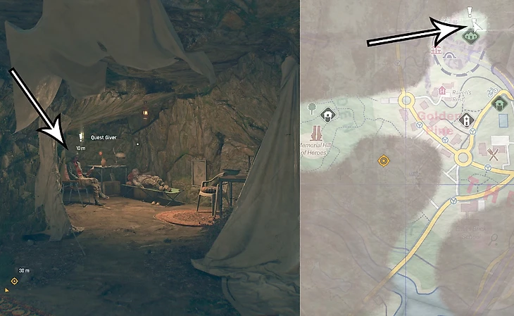 Задание «Последнее желание» открывается для выполнения только после прохождения основного сюжетного квеста «Кому-то нравится темнота». Чтобы начать миссию, необходимо найти Амелию в лагере Пещера изгнанников. Она находится в нижней части пещеры, где ухаживает за пожилой женщиной. Диалог с Амелией и даст старт этому трогательному побочному заданию.