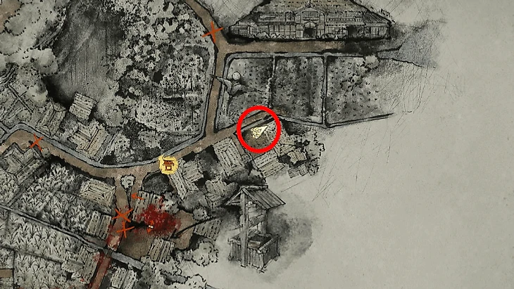 2. Вторую можно найти рядом с хокорой, где соломенный забор и три корзины.