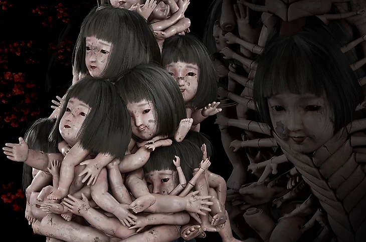 Это создание напоминает жуткий клубок, сплетенный из целлулоидных кукол. Каждая из них, возможно, когда-то была чьим-то лучшим другом, и теперь их искаженные образы стали частью этого кошмара.