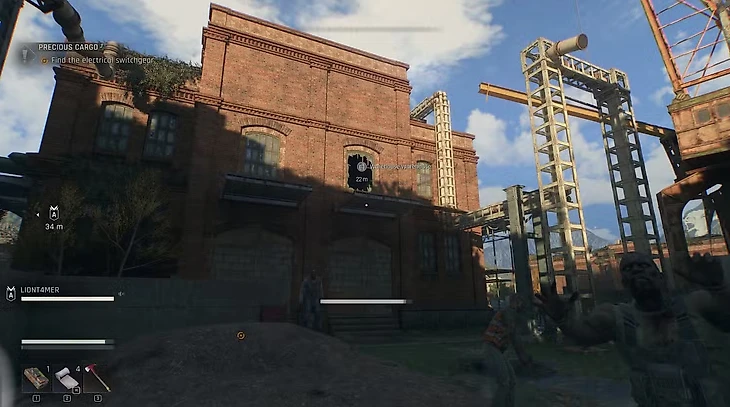 Поднявшись наверх и активировав его, выяснится, что кран нуждается в энергии, поэтому направляйтесь проверять электрическую панель на крыше склада – это следующее направление вашего пути.
