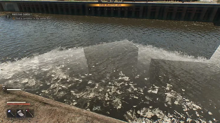 Начните с дороги, которая пролегает над водопроводом. Продвигайтесь по кромке земли, пока не увидите контейнер. Когда подойдете ближе, нырните в воду и подплывите прямо к нему – цель обновится, указывая путь вперед.