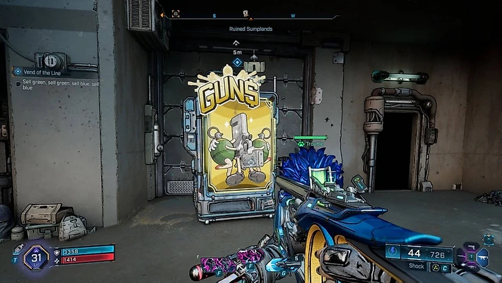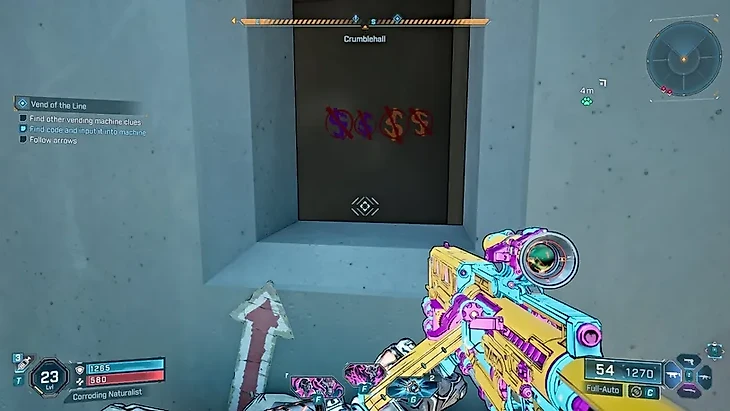 Там вас ждет много Рипперов – поэтому ликвидируйте их как можно скорее. Вы придете в нужную точку и увидите торговый автомат с кодом сзади – зеленый, синий, фиолетовый, оранжевый. Опять же вам придется продать снаряжение в этом порядке.