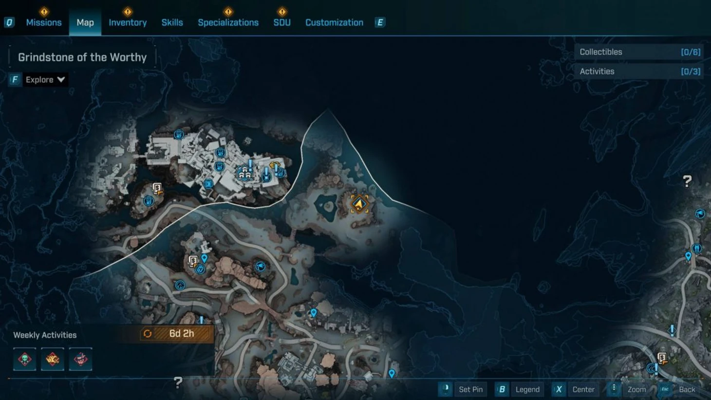 На карте будет указана точка, где находится легендарный торговый автомат. Находится он в Пыльном Болтуне (The Dusty Dangler), у Жерновов Достойных (Grindstone of the Worthy), к востоку от Каркадия-Сити. Добираться придется долго, но и следовать нужно во всеоружии.