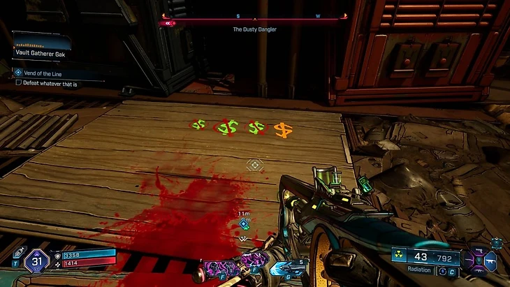После победы над автоматом вам позвонит Зейн, который попросит встретиться для завершения квеста. Пока не торопитесь это выполнять. Для начала посмотрите на то место на земле, где прежде стоял легендарный автомат до боя – там на деревянной платформе нарисованы три перечеркнутых зеленых знака доллара и один не перечеркнутый оранжевый.