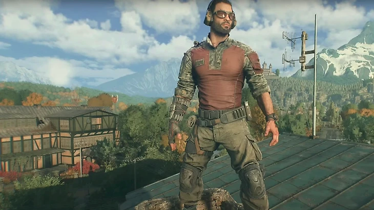 Стильный и практичный комплект, включающий наушники, тактические очки и красновато-серую рубашку с усиленными брюками. Внешне напоминает хорошо экипированного бойца, выполняющего опасные миссии.