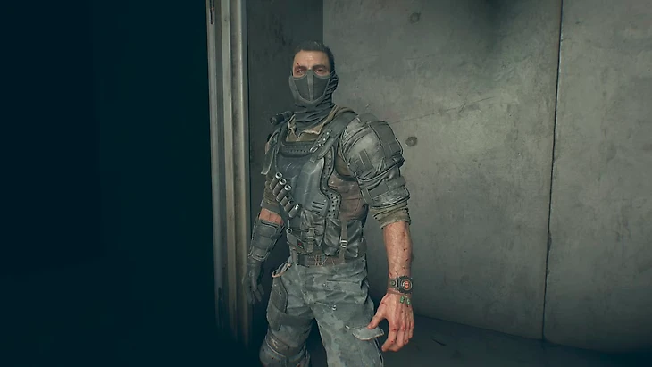Сет представляет собой массивную, многослойную броню, предназначенную для максимальной защиты. Она включает бронежилет, набедренные накладки и плотную маску, что делает персонажа похожим на солдата спецназа или хорошо экипированного мародера.
