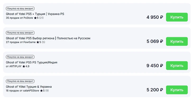 Продолжение культового «Призрака Цусимы» можно купить в онлайн-магазинах примерно за 5000 рублей. Стандартное издание в зарубежном PS Store обычно стоит 70-80 долларов, что и формирует итоговый ценник с учетом комиссии продавца.