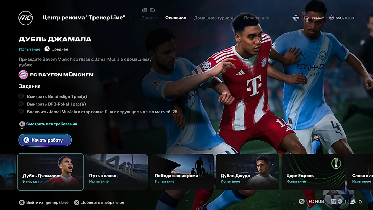 Другая крупная новинка – лайв-карьера. Испытания Live получили отдельную вкладку и предлагают десятки заданий: быстрые челленджи на трансферы и серии побед, успех с молодым составом, повторение сезонов Джуда Беллингема и Джамала Мусиалы и др. Удобные сэйвы можно продолжить в классическом формате или попробовать новые футбольные квесты. В награду за испытания предлагают прикольные дополнительные формы.