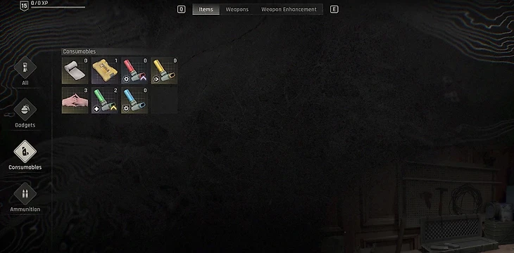Чертежи расходных материалов представляют собой своеобразные инструкции, с помощью которых можно изготавливать одноразовые предметы. Эти предметы способны восстанавливать здоровье Кайла Крейна и на некоторое время улучшать его ключевые параметры: повышать уровень защиты, ускорять регенерацию, увеличивать выносливость и усиливать атаку. В отличие от самих расходников, чертежи найти сложнее – они встречаются редко и доступны только в определенных локациях или за прохождение миссий.