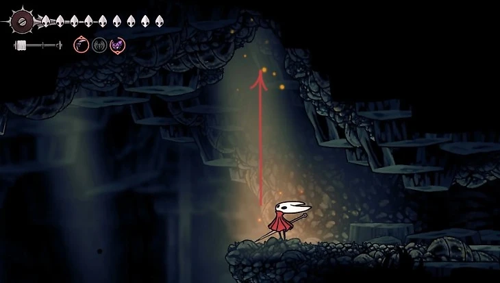 Надо проникнуть на самую вершину Колыбели. Придется много попрыгать и решить парочку головоломок на пути. А потом проходим в светящуюся щель, используя «окрыляющий шелк». Попадаем в пещеру на верхней точке Колыбели, заходим внутрь и проходим испытание. Играем Иглончели и призываем тем самым Глашатая. Говорим с ним, прощаемся и ждем его в следующей части Холлоу Найт.