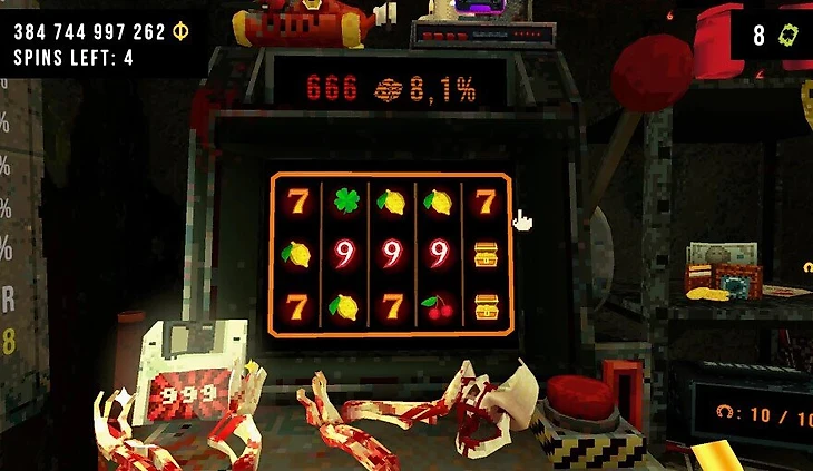 CloverPit – не просто бесконечный симулятор дергания рычага, в ней все-таки есть небольшой сюжет. И чтобы пройти игру, необходимо вызвать 666 самостоятельно, чтобы пропустить звонок с красными символами. Поэтому шестерки могут стать частью стратегии, а не просто служить для наказания неудачливых игроков.