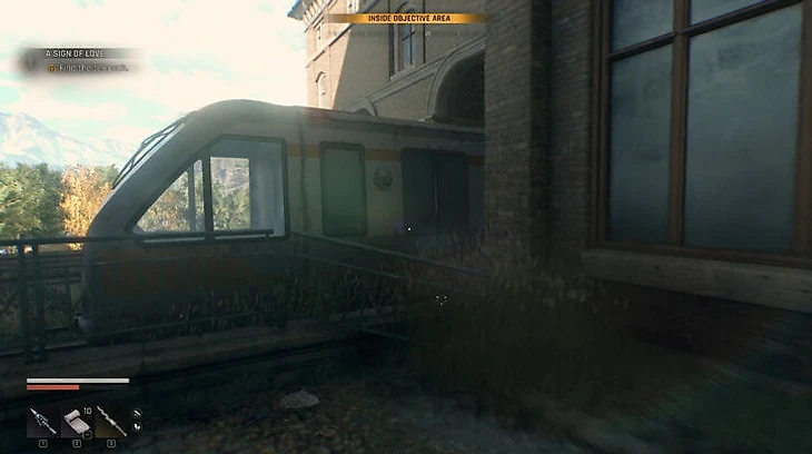 Включите «Чувство выжившего», чтобы обнаружить охранников и избегать их внимания. Заберитесь на поезд и спрячьтесь, чтобы остаться незамеченным.