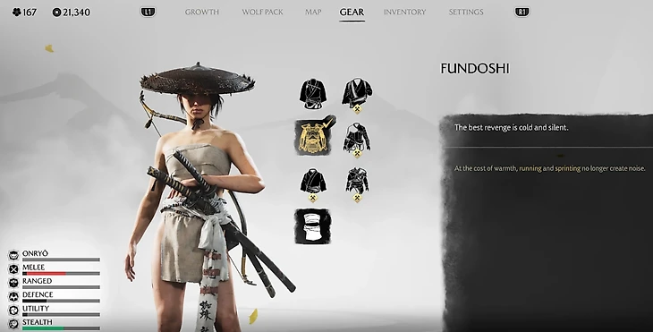 По завершении посещения всех 16-ти источников игрок получает ценный приз — костюм Фундоши. Эта особенная одежда не подлежит улучшению, однако, обладает замечательным свойством – в ней бег и спринт не создают ни малейшего шума, что позволяет сохранять инкогнито даже при быстром перемещении.