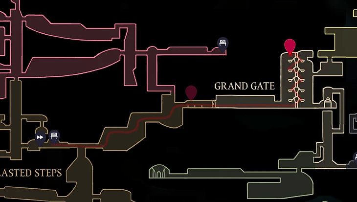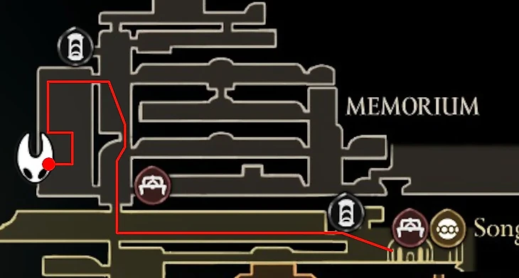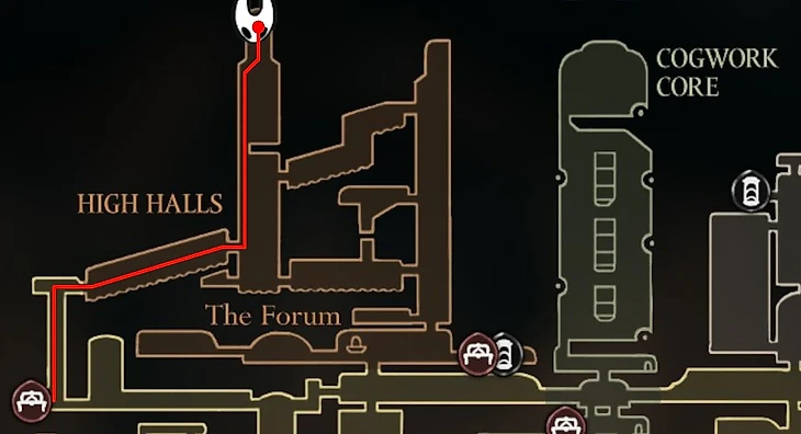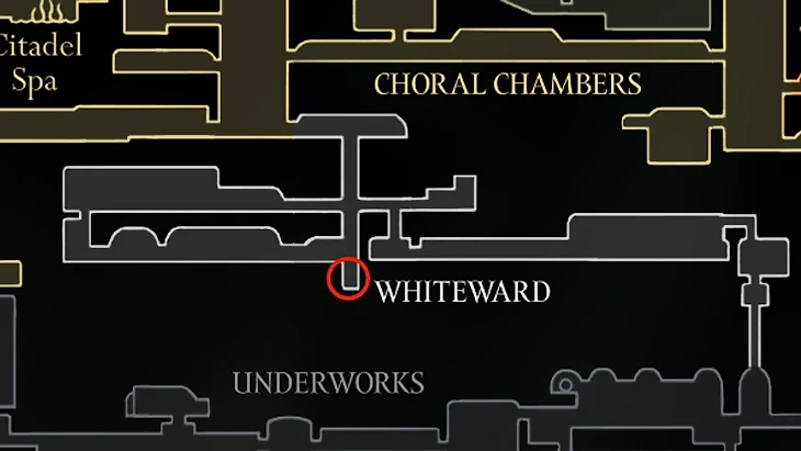 Спрятан рядом с лавочкой возле Архитектора. От лавочки пройдите вправо и спрыгните вниз. Сломайте деревянные подпорки (балки) на левой стене ударами Иглы или Искусством, чтобы открыть скрытый проход.