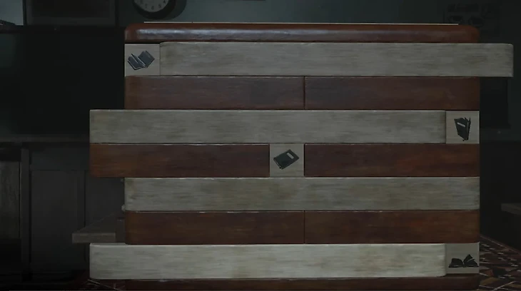 На второй стороне нужно найти изображение всего одно, так что найти его будет несложно. Передвиньте вторую темную справа дощечку, чтобы открыть картинку и завершить этап головоломки.