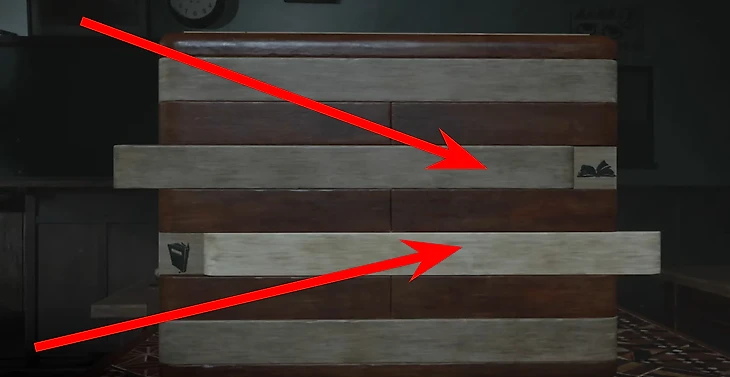 На первой стороне нужно найти три изображения, напоминающих дневники. Чтобы их открыть, передвиньте следующие дощечки: