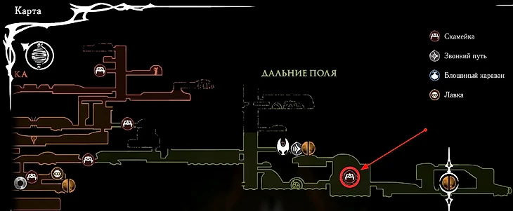 После квеста 4 хор появится в комнате слева от палатки, перекрывая выход в «Костяную Низину» или «Мрачную топь». Не уходите без победы – путь вперед закрыт.