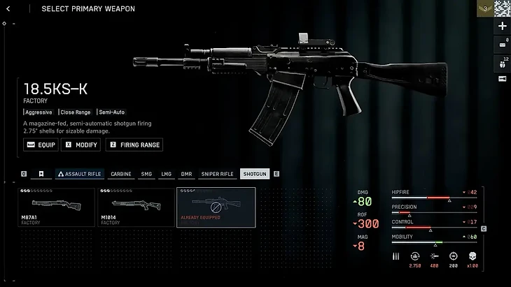 Описание: Единственный полностью автоматический дробовик в Battlefield 6. Компенсирует умеренный урон чудовищной скорострельностью, превращаясь в настоящую мясорубку на малых дистанциях. Лучший выбор для агрессивных игроков, которые не боятся ворваться первыми.