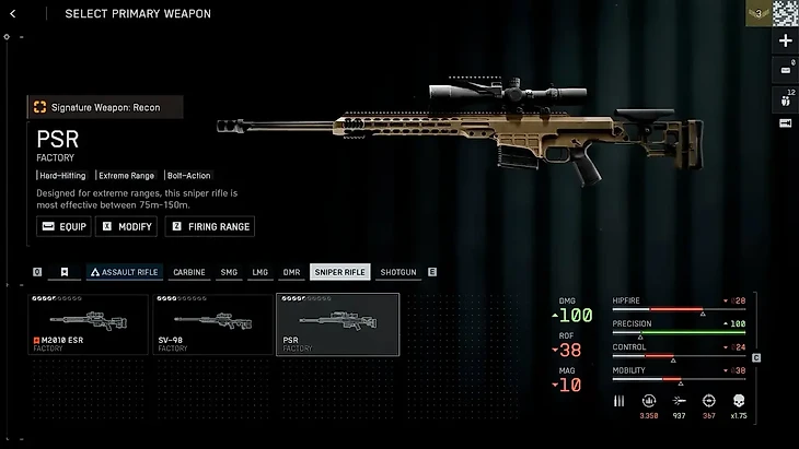 Описание: PSR — снайперка для дальнобойных дуэлей. Большая скорость пули и высокий урон делают ее смертельной на дистанциях 100+ метров. Это оружие требует опыта, но в умелых руках превращает владельца в живую турель и ключевую угрозу на поле боя.