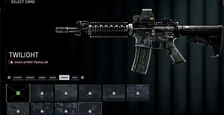 Для оружия все аналогично: в «Loadouts» отметьте нужное оружие, откройте вкладку «Скин» в настройках и примените доступный камуфляж, скин или обертку. Большинство обликов становятся доступными через испытания – от завершения одиночной кампании до выполнения специфических челленджей по классам.