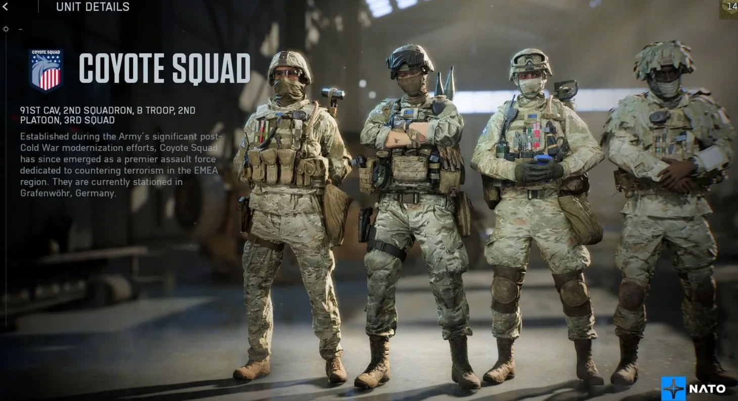 Отряд «Койоты» – это воплощение американских воинов в Battlefield 6, одетых в униформу, близкую к реальной армии США. Каждый член команды имеет свою историю, что добавляет глубины ролевой игре.