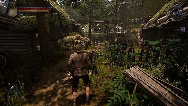 Но это не просто «ностальгия по евроджанку 2010-х». Здесь полно современных улучшений, совершенно несвойственных бюджетной российской инди-разработке: герой умеет на ходу забираться на поверхности и перепрыгивать через заборы, одежда пачкается от крови и падения в грязь (NPC реагируют на вашу неряшливость). Если пробежать на полном ходу через лужу или кучу навоза, можно поскользнуться и грохнуться. Персонаж динамически опирается на стены и дверные проёмы, когда проходит мимо, и взбирается на поверхности автоматически по нажатию «пробела».