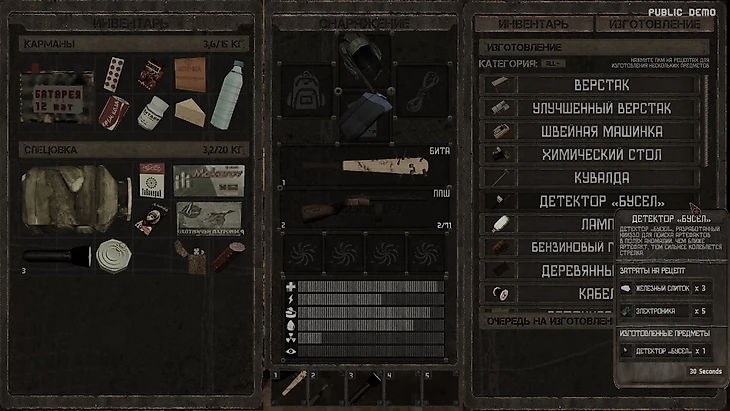 Misery может отпугнуть примитивной графикой. Но если переступить через это, то вам откроется удивительно качественная игра в жанре «сталкинг-хабаринга по радиоактивным заброшкам». Все нужные механики уже работают! Сбор лута ведется в ограниченный инвентарь, который можно расширять сумками и карманами одежды. Есть взаимосвязанные системы голода, жажды, психики и радиационного заражения. Поиск артефактов с помощью детектора среди разнообразных аномалий. Крафт, ограниченные по времени рейды (если задержаться на поверхности слишком долго — можно попасть под выброс смертельной энергии), расчет ресурсов и даже строительство.