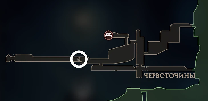 Самый первый Ткачедом, доступный в начале игры. От стартовой точки спуститесь вниз и идите направо, пока не увидите дверь с узором паутины. Внутри вы найдете мини-зону с собственным чекпоинтом и механизмом посередине. Активируйте его, чтобы получить карту Ткачедома Атла.