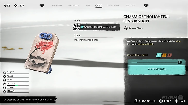 В «Гост оф Йотей» система талисманов делится на старшие (Major Charms) и младшие (Minor Charms). Первые дают сильные и постоянные бонусы, определяя основу стиля боя Ацу, а вторые – усиливают выбранную стратегию, помогая тонко настраивать билд. Грамотное сочетание обоих типов делает героиню универсальной и готовой к любым испытаниям.