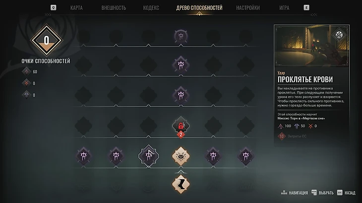 У каждого клана всего четыре активных умения и два пассивных. Маловато, однако Фаир может осваивать навыки других кланов через отдельную механику. Концептуально это открывает простор для необычных билдов, но в реальности утомительно. Каждую способность приходится открывать через вампирский гринд, собирая очки крови с НПС нужного типа. Например, чтобы выучить что-то из древа умений Тремера, Теодору нужно накопить 100 очков сангвинической крови и 50 меланхолической. Чем круче умение, тем дороже оно обходится.