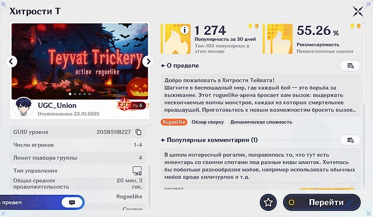 Teyvat Trickery – рогалик с полчищами врагов, в котором нужно с каждым уровнем улучшать свой билд и покупать различные улучшения для себя и команды. Лучше всего играть в него с друзьями, чтобы договариваться о воскрешениях – на высоких уровнях боссы могут снести все здоровье за один удар.