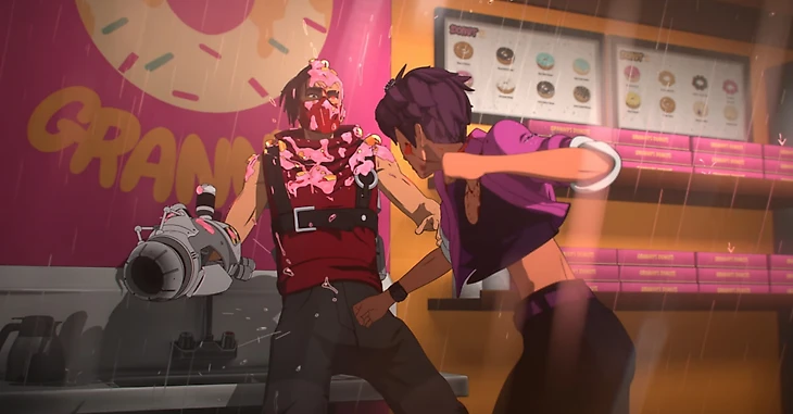 Режиссер Деннис Ленар отмечал, что команда вдохновлялась стилем «западной анимации», сочетая приземленный реализм персонажей с визуальными аниме-эффектами. После ночи в баре Блейзер и Роберт летят над ночным Лос-Анджелесом – оттенки города так напоминают Нео-Токио из «Акиры».
