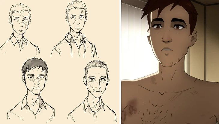 Еще один пример внимания к деталям – порванное ухо Роберта. Изначально художники хотели наградить персонажа шрамом на лице и даже сделали несколько набросков. Но решили, что шрамы делают образ слишком прямолинейных и беспокойным, а ведь герой не такой. Поэтому выбрали деталь, которая не так явно бросается в глаза.