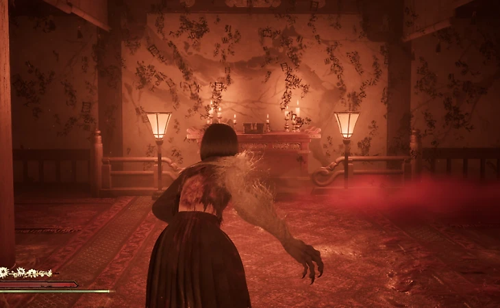 В длинном коридоре первая дверь справа скрывает полезный талисман – омамори-собаку. Продолжайте движение до конца, где вас будет ждать алтарь со шкатулкой, где будет лежать необходимый герб.